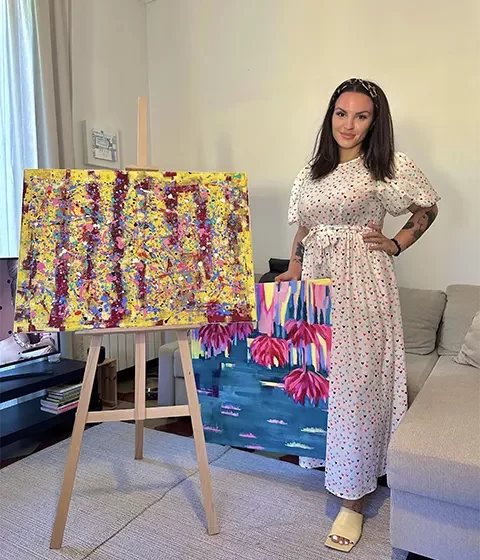 Adela Stanic, based in Dubai, is an Italian painter who creates vibrant, abstract acrylic paintings. Her distinctive, expressive style is inspired by a wide variety of influences, from modern art to traditional Italian painting techniques.