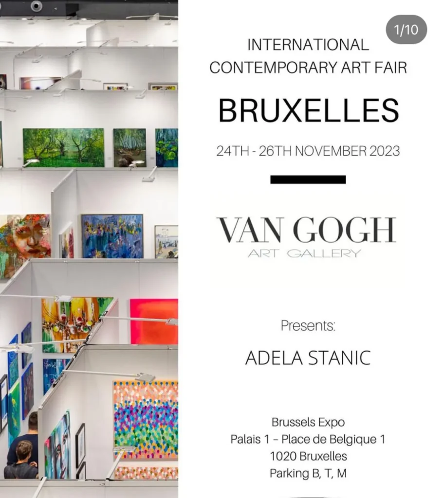 Adela’s artistry took center stage at the “Van Gogh Art Gallery’s International Contemporary Art Fair” in Brussels, Belgium, from December 24th to December 26th, 2023. In the heart of the European art scene, Adela’s creations adorned the exhibition space, drawing the attention of art enthusiasts, collectors, and critics alike. The fair provided a unique opportunity for attendees to immerse themselves in the vivid world of Adela Stanic’s acrylic masterpieces.
